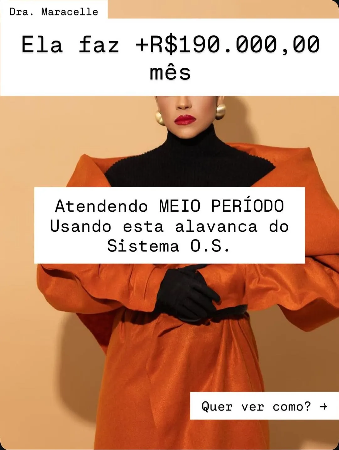 A Dra. Marcella hoje ultrapassa R$ 190 mil mensais atendendo meio período, com uma agenda leve, seletiva e altamente lucrativa. O sistema trouxe previsibilidade e posicionamento de autoridade, mostrando que o crescimento real vem de estratégia, não de volume. O resultado: mais tempo, mais lucro, mais liberdade.